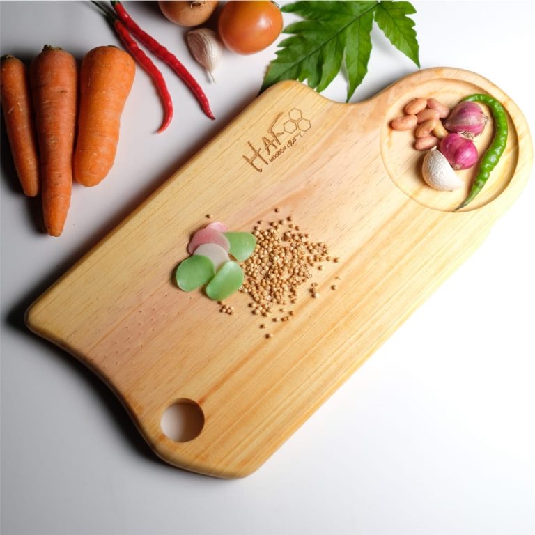 This beautifully crafted wooden cutting board from BEST CRAFT is designed not only for function but also for form. Made from high-quality wood, it features a smooth surface for slicing and a unique round inset to neatly hold spices or garnish — blending practicality with thoughtful design.